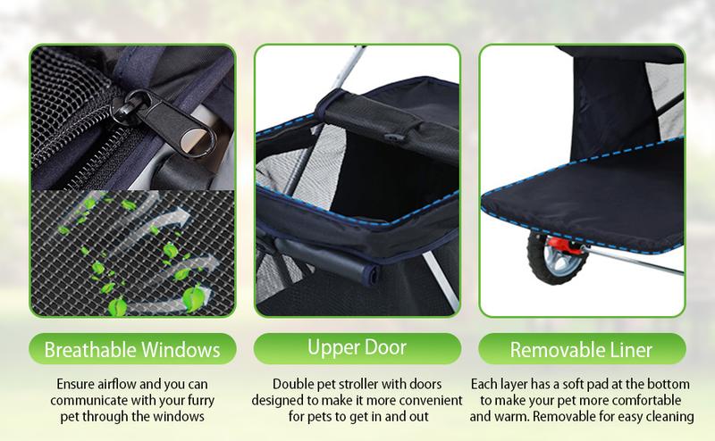 - 【Light and Foldable】The pet dog stroller is convenient to carry and use anywhere whether at home or on vacation. Pet stroller weighing in at only 14lbs and folds flat to save space. Easy to take from the car to the home or to your favorite outdoor place.
